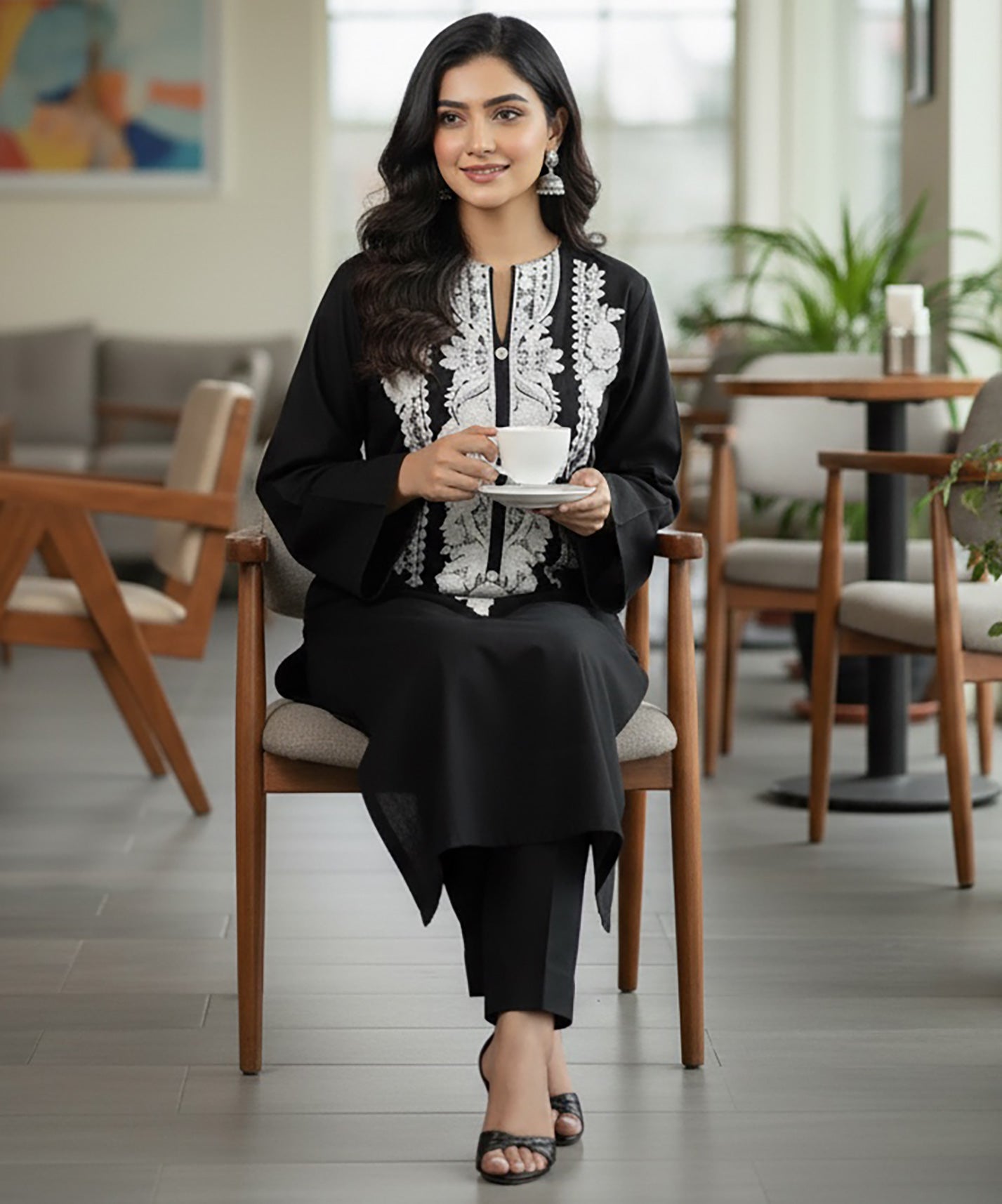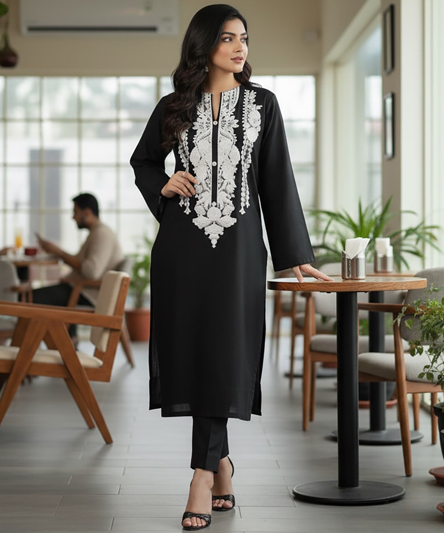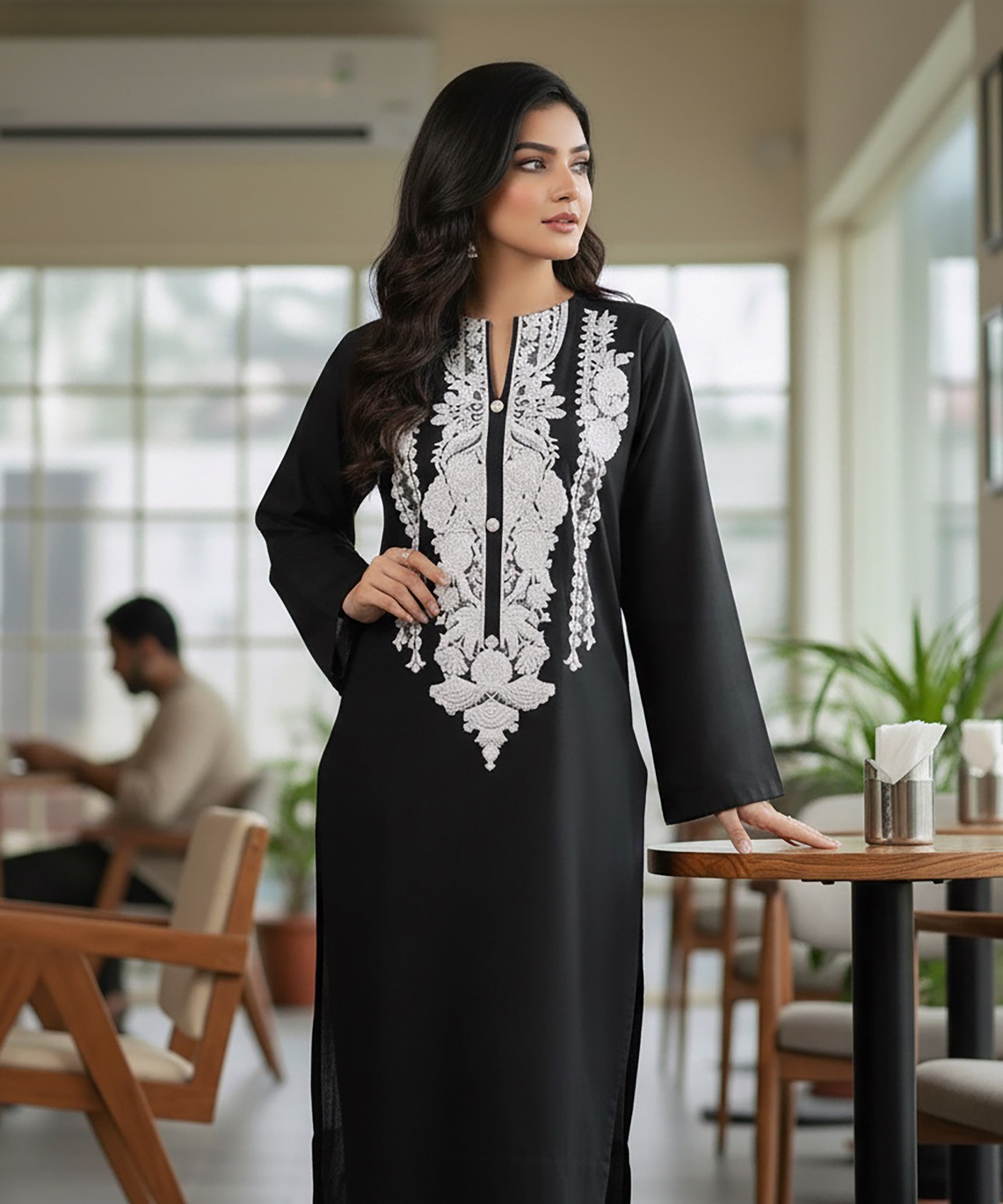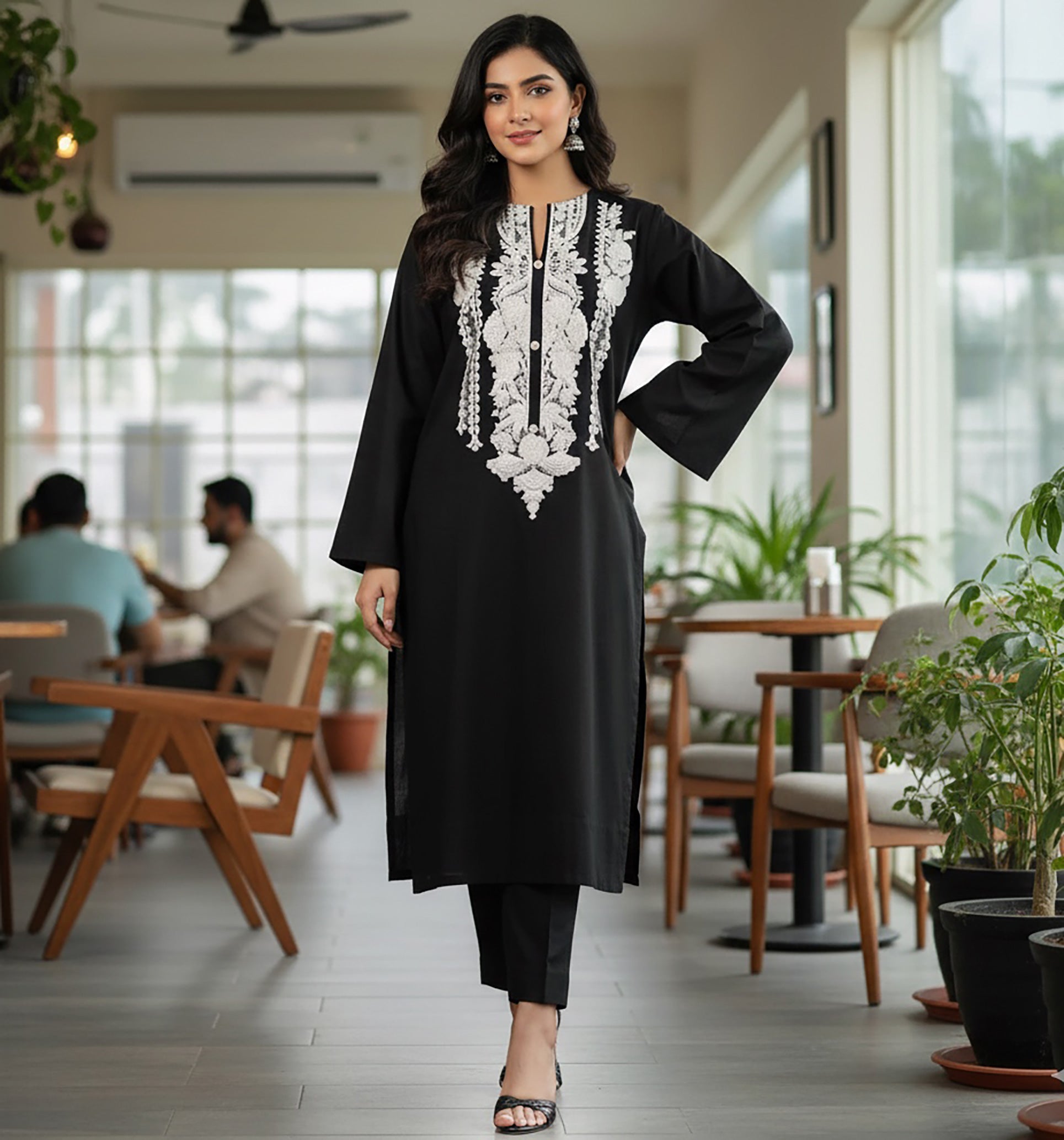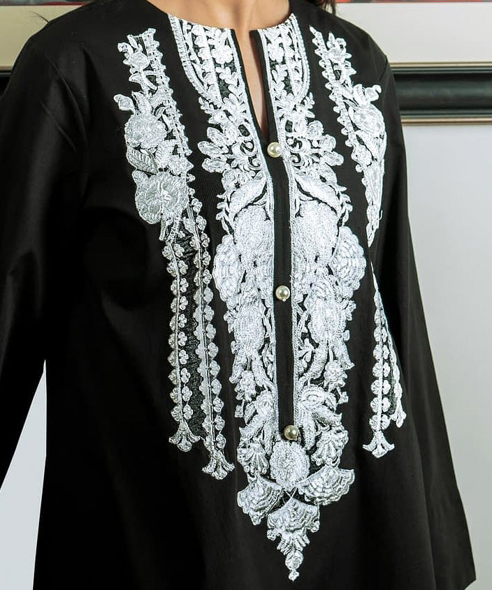 A timeless winter favorite — Noir Grace features a rich black khaddar base adorned with intricate white embroidery on the neckline. Minimal yet elegant, this 2-piece ready-to-wear outfit brings effortless sophistication to your winter wardrobe.