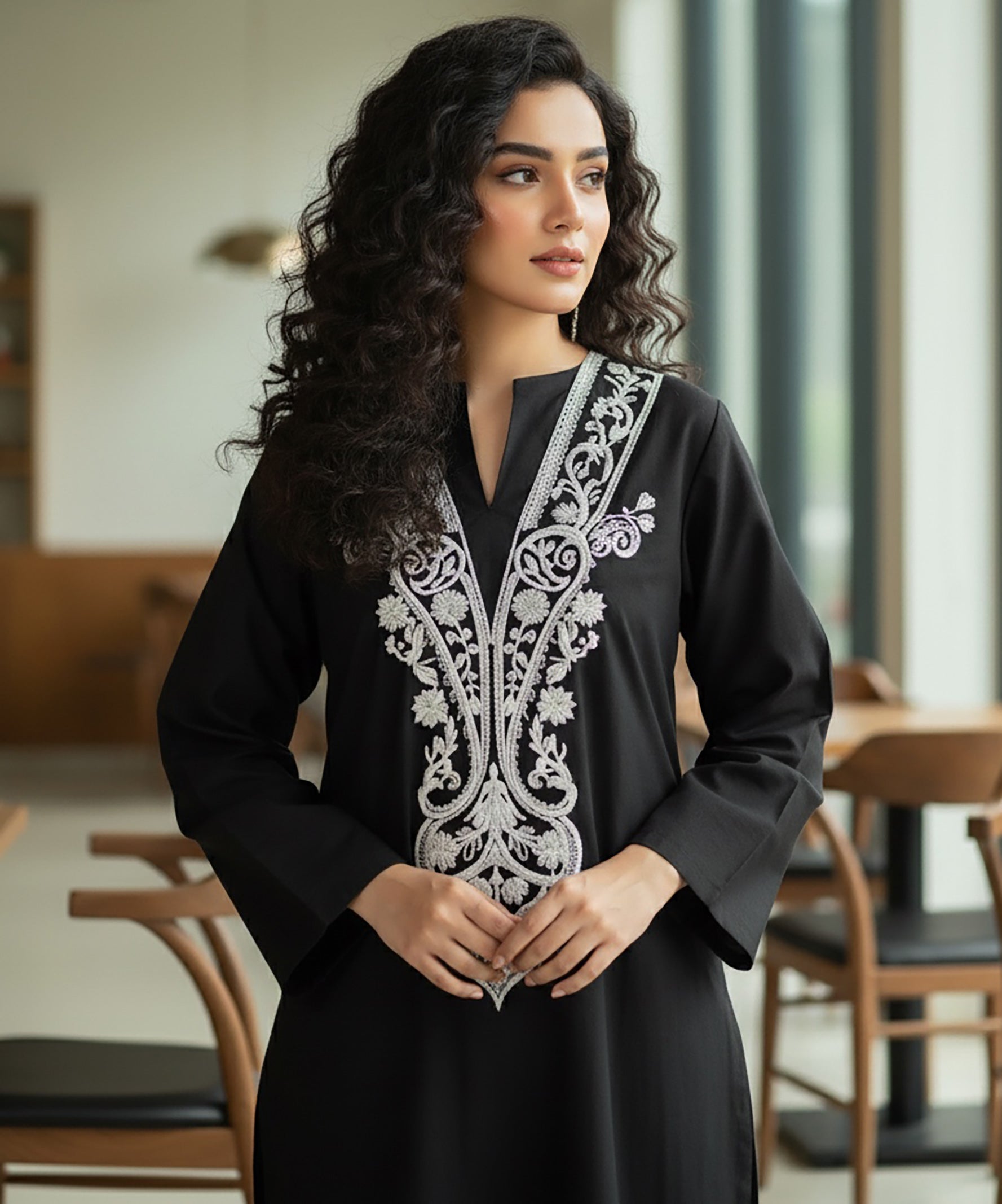 Noir Petal brings timeless beauty to life through fine white embroidery over deep black khaddar. Designed for effortless grace, this ready-to-wear 2-piece promises the perfect mix of comfort and winter charm.